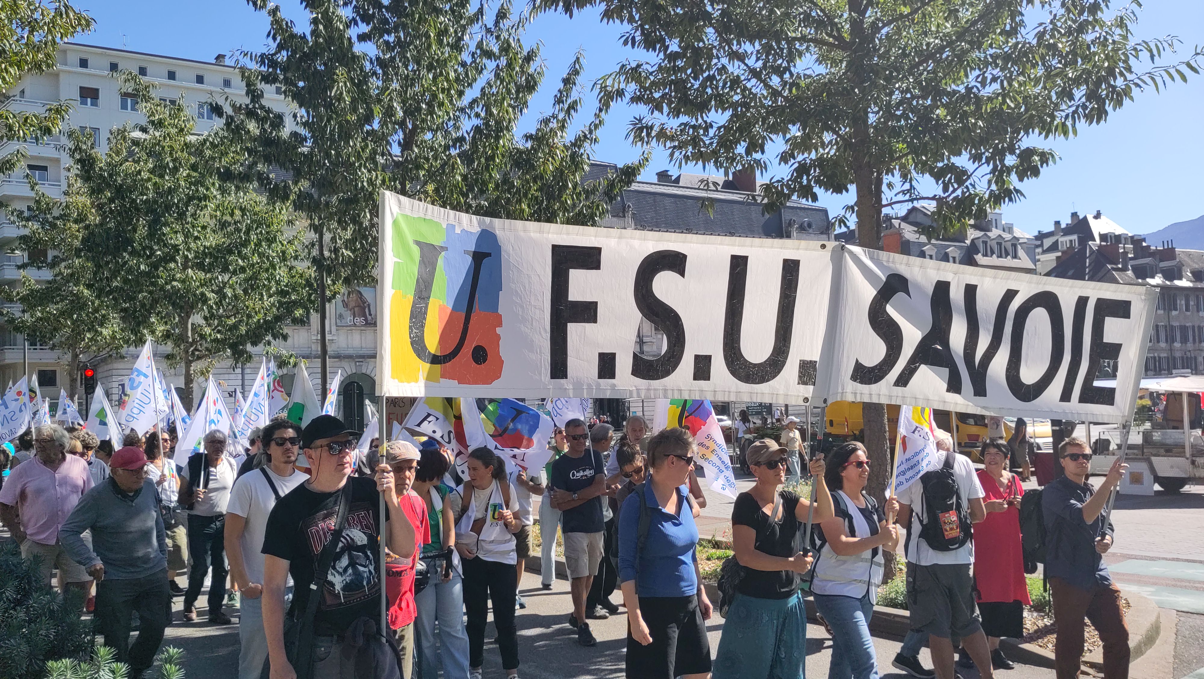 Le cortège de la FSU73 au départ de la manifestation du18 septembre.
