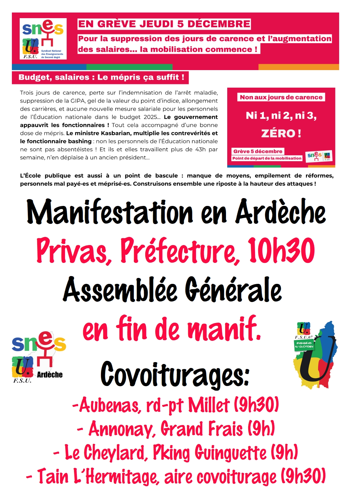 Vous êtes ici : Accueil Actualités 5 Decembre : Manif et AG en Ardèche 28 novembre 2024 Sections départementales 5 Decembre : Manif et AG en Ardèche Imprimer l'article Télécharger le poster :