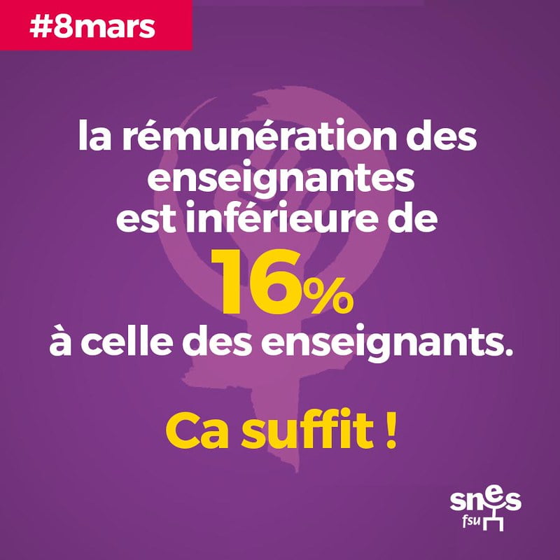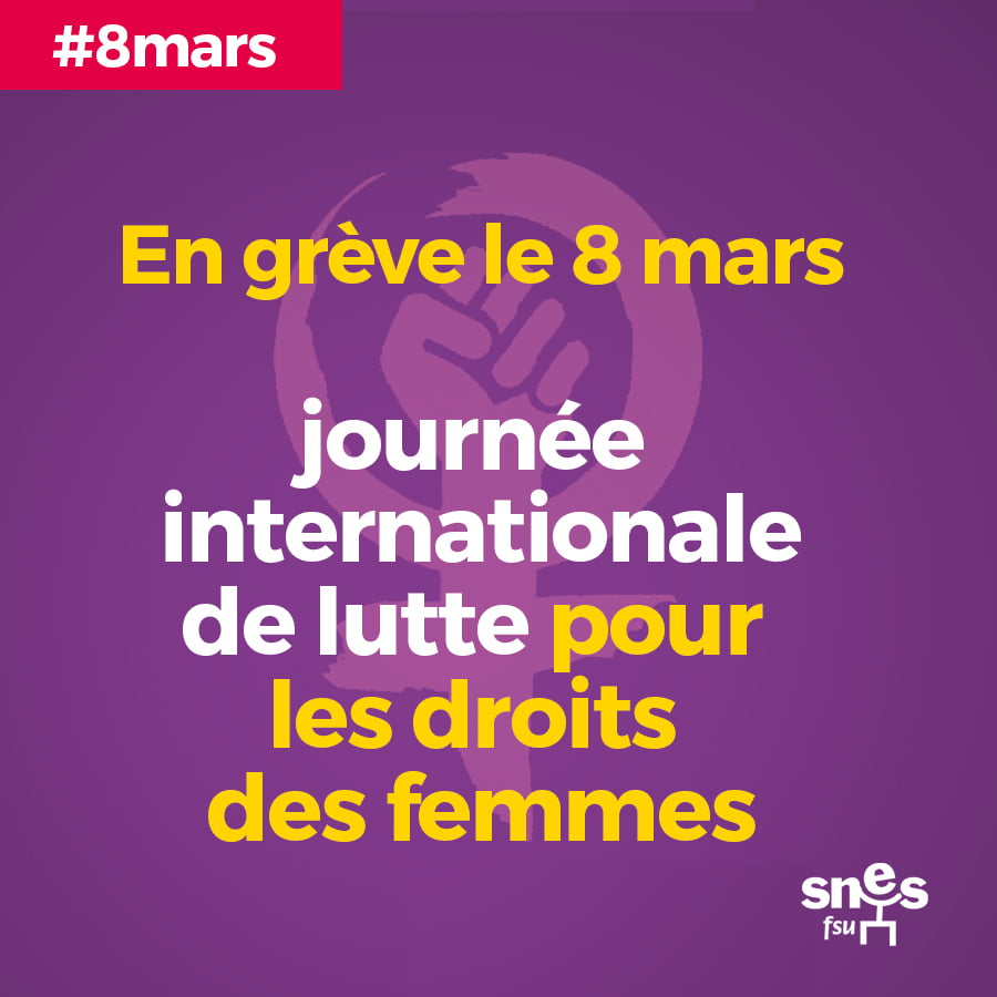 Parce que ces inégalités sont profondément injustes et que nous devons obtenir des mesures correctrices et de véritables revalorisations salariales, le SNES et la FSU appellent dans une intersyndicale large les personnels à se mettre en grève ensemble le 8 mars sur l’ensemble .du territoire.