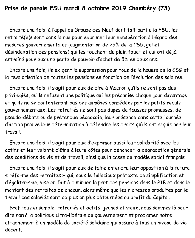 Vous êtes ici : Accueil Actualités Archives ACTION RETRAITE - Prise de parole à Chambéry 10 octobre 2019 Sections départementales ACTION RETRAITE - Prise de parole à Chambéry Imprimer l'article Cet article n'est probablement plus d'actualité Prise de parole du 8.10.19