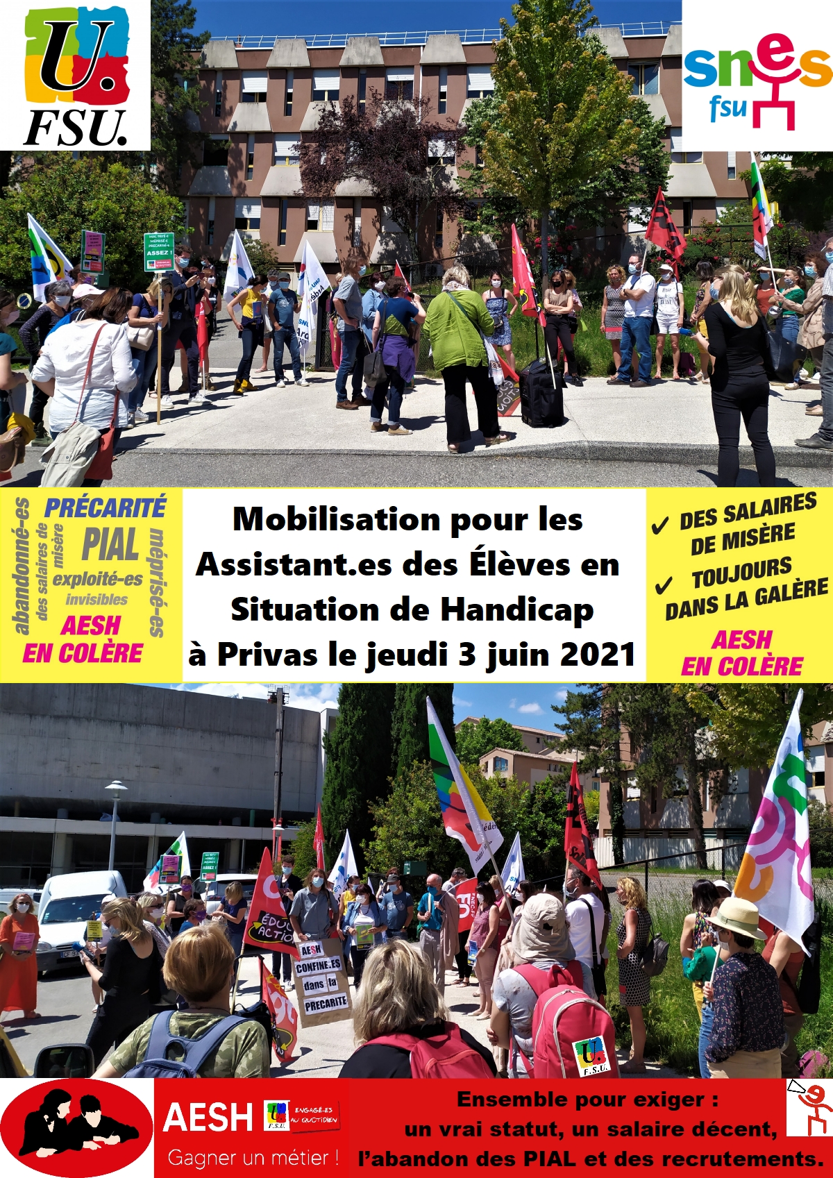 Le 8 avril dernier a mis en lumière les dégradations des conditions de travail des AESH depuis la mise en place des PIAL au travers notamment de témoignages à lire sur le site de la section départementale de la FSU.