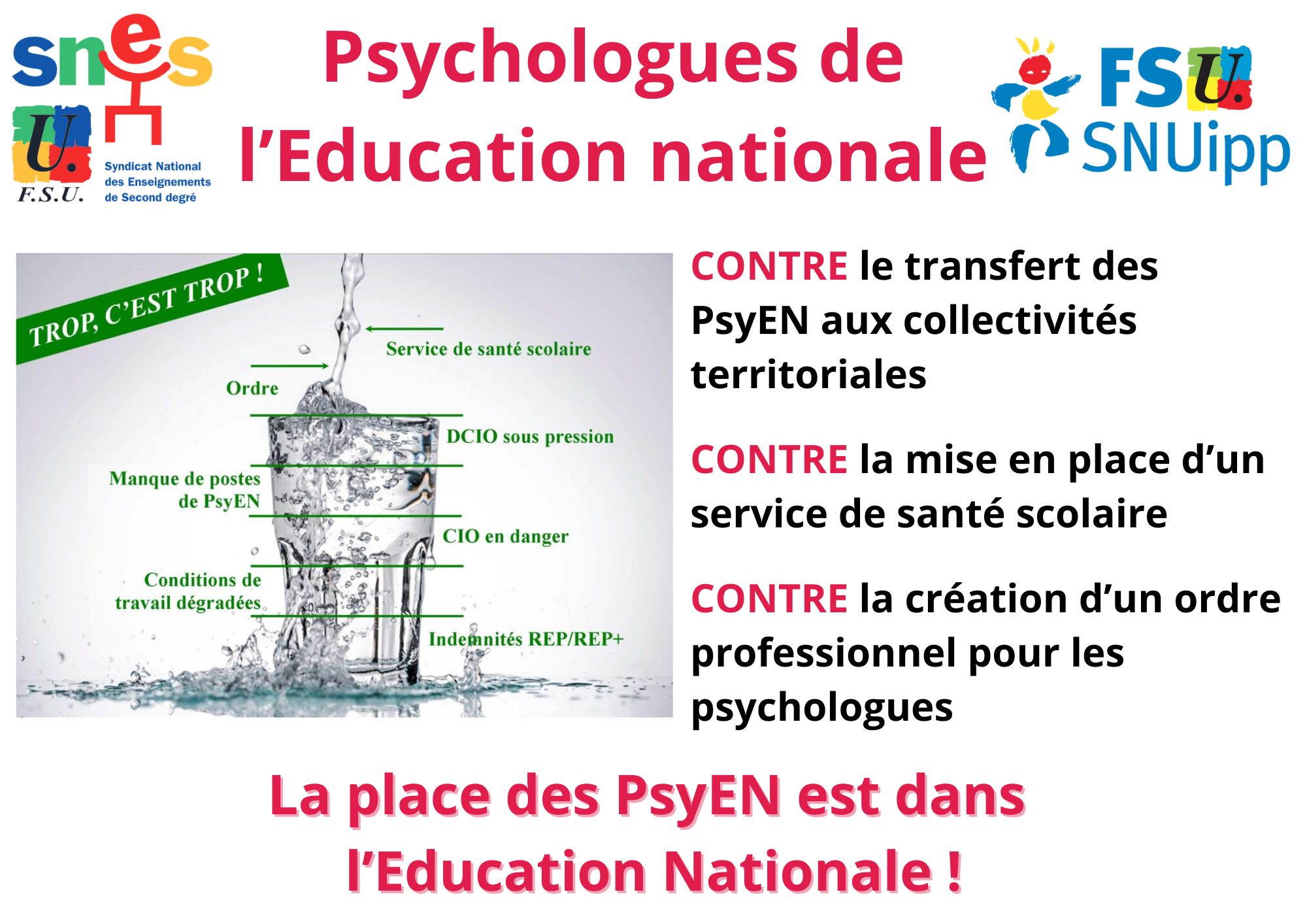 - NON à l’intégration des PsyEN dans un service de santé scolaire !