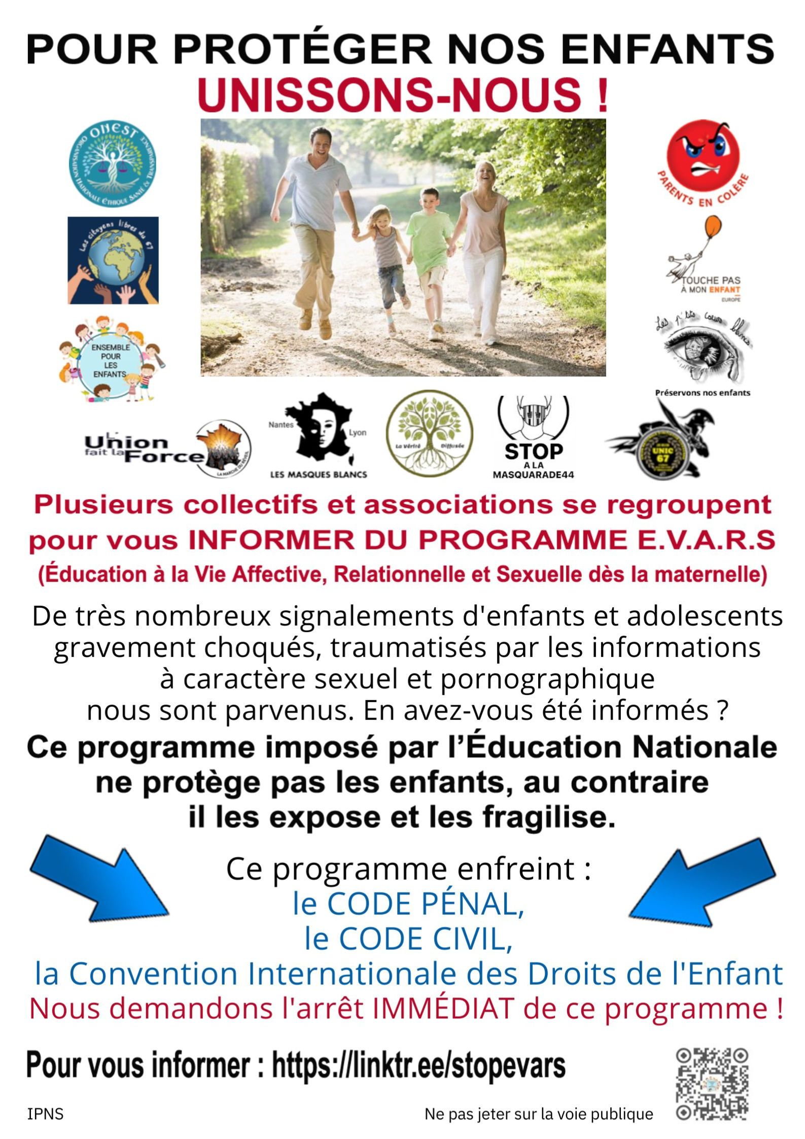 Selon eux, les professeur.es et intervenant.es apprennent aux enfants de 0 à 4ans à se masturber 2, des images pornographiques 3 sont diffusées en classe, les programmes sont dispensés sans prise en compte de l’âge des élèves dans le but de les choquer 3 et d’en faire de la « chaire à pédophile » 4 (selon certains collectifs, la pédophilie aurait d’ailleurs été légalisée dans le monde par le rapport de l’OMS appelé « Standards pour l’éducation sexuelle en Europe » publié en 2010 5) etc. Ces propos sont accompagnés de brochures qui seraient distribuées aux élèves mais la source n’est pas précisée ni la manière dont ils et elles se sont procuré.es le document allant même jusqu’à mentir quant au public concerné dans l’espoir de susciter l’indignation 6. On ne s’embarrasse pas avec l’esprit critique ni avec les faits, ce qui compte c’est que l’information choque !