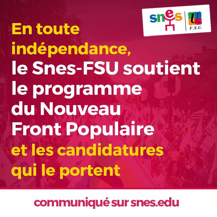 Le SNES-FSU déclare cependant qu’il ne suffit pas d’énoncer des revendications et des aspirations et qu’il faut sous peine de déceptions cruelles et graves dans leurs conséquences, leur donner corps. Le contrat social présenté par le Nouveau Front Populaire ne s’accomplira pas sans mobilisation dans la rue et sur les lieux de travail.