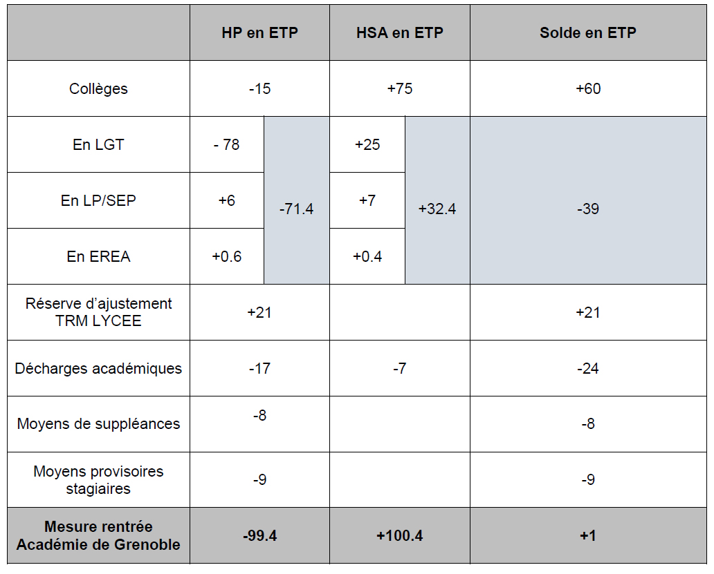 Par ailleurs, alors que les discours se voulaient rassurants, les lycées paient le prix forts. Les estimations faites dès l’annonce de la réforme se concrétisent : 78 postes sont supprimés, soit un par lycée. Le rectorat garde 21 ETP pour calmer la grogne en saupoudrant selon les mobilisations locales. Face à ces suppressions massives, la grève du 24 janvier doit être un temps fort de refus de cette politique qui cherche à monter les collègues les uns contre les autres pour faire passer ces réformes.