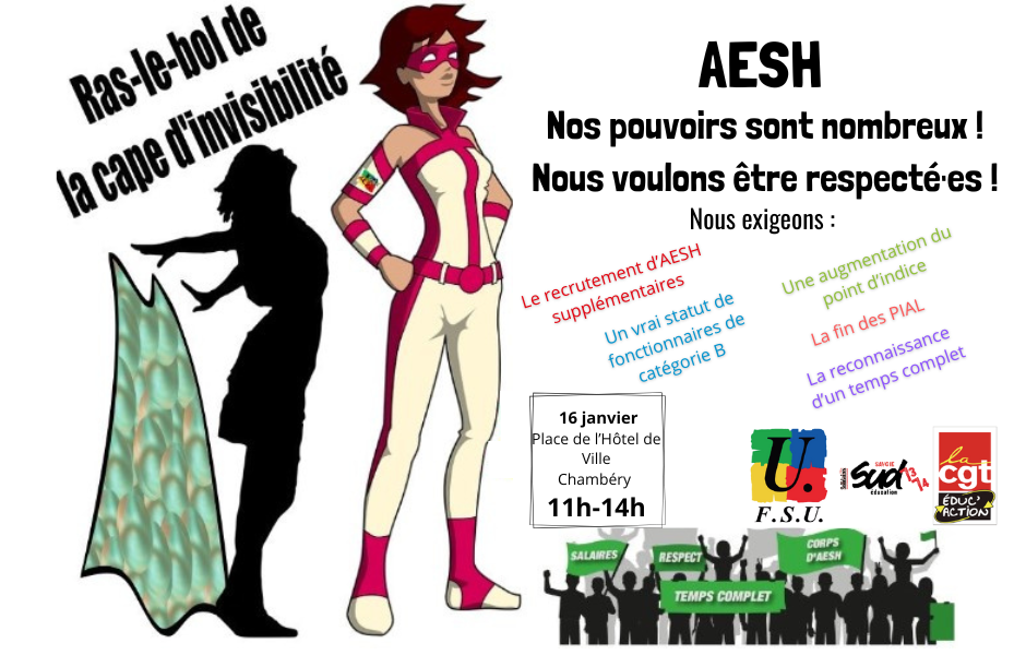 Grève AESH le 16 janvier : à Chambéry rassemblement Hotel de Ville 11h/14H