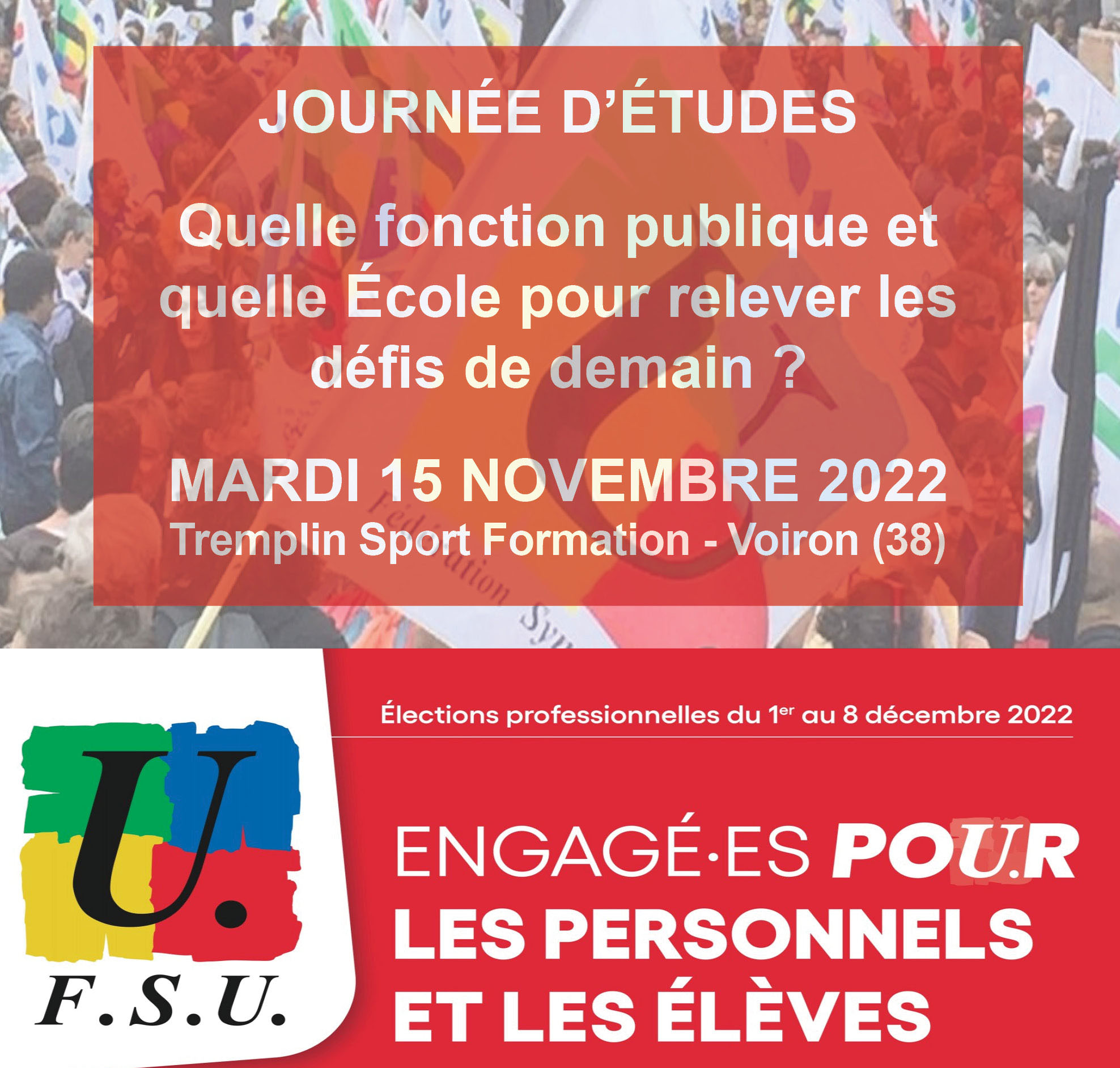 Cette journée d’études est déclarée en stage syndical. Il convient donc, si vous êtes de service ce jour, de faire la demande avant le 15 octobre pour obtenir une autorisation d’absence de droit.