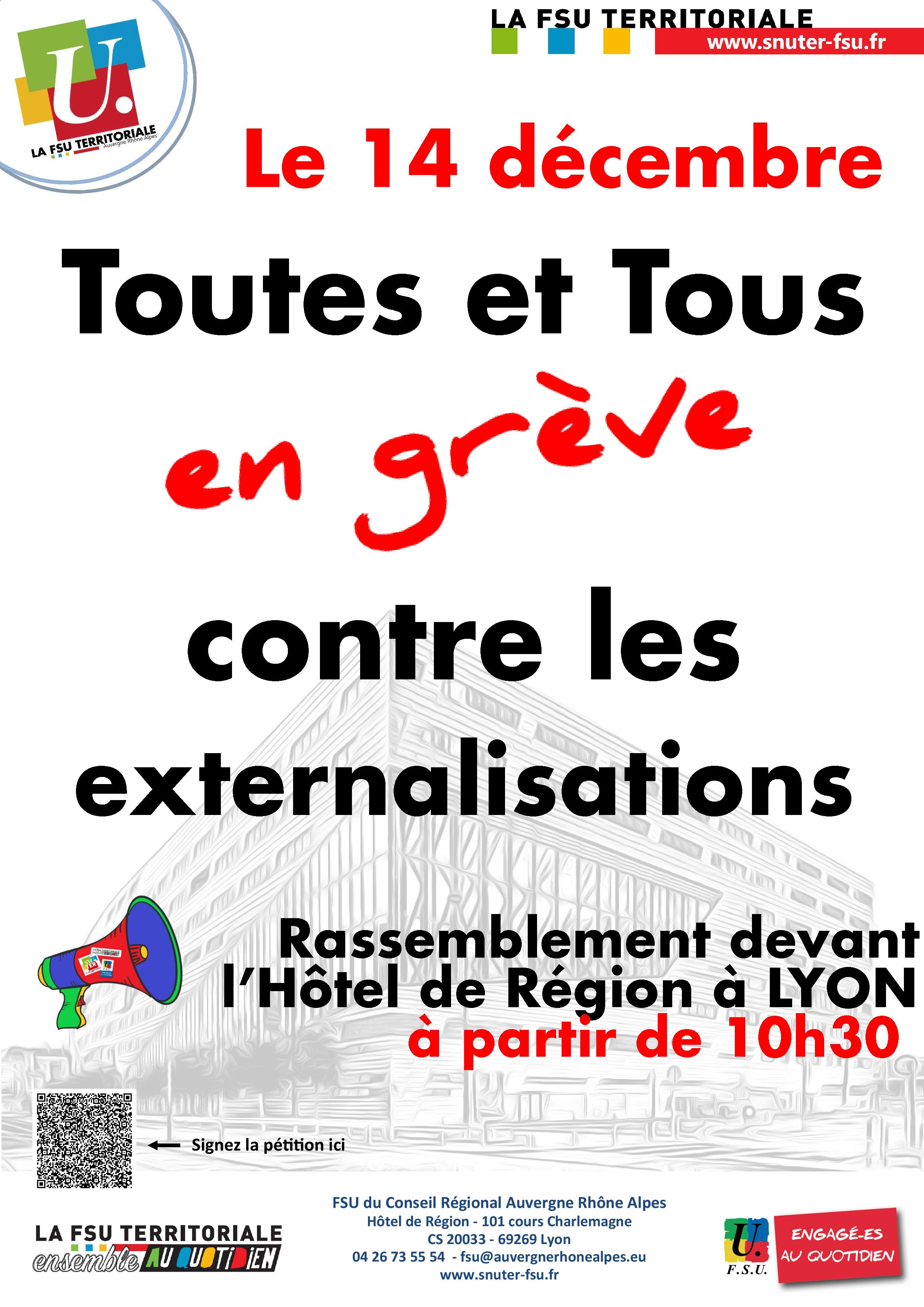 Elle appelle également au rassemblement initié par la FSU Territoriale le jeudi 14 décembre, à 11h00, devant le Conseil Régional AuRA à Lyon.