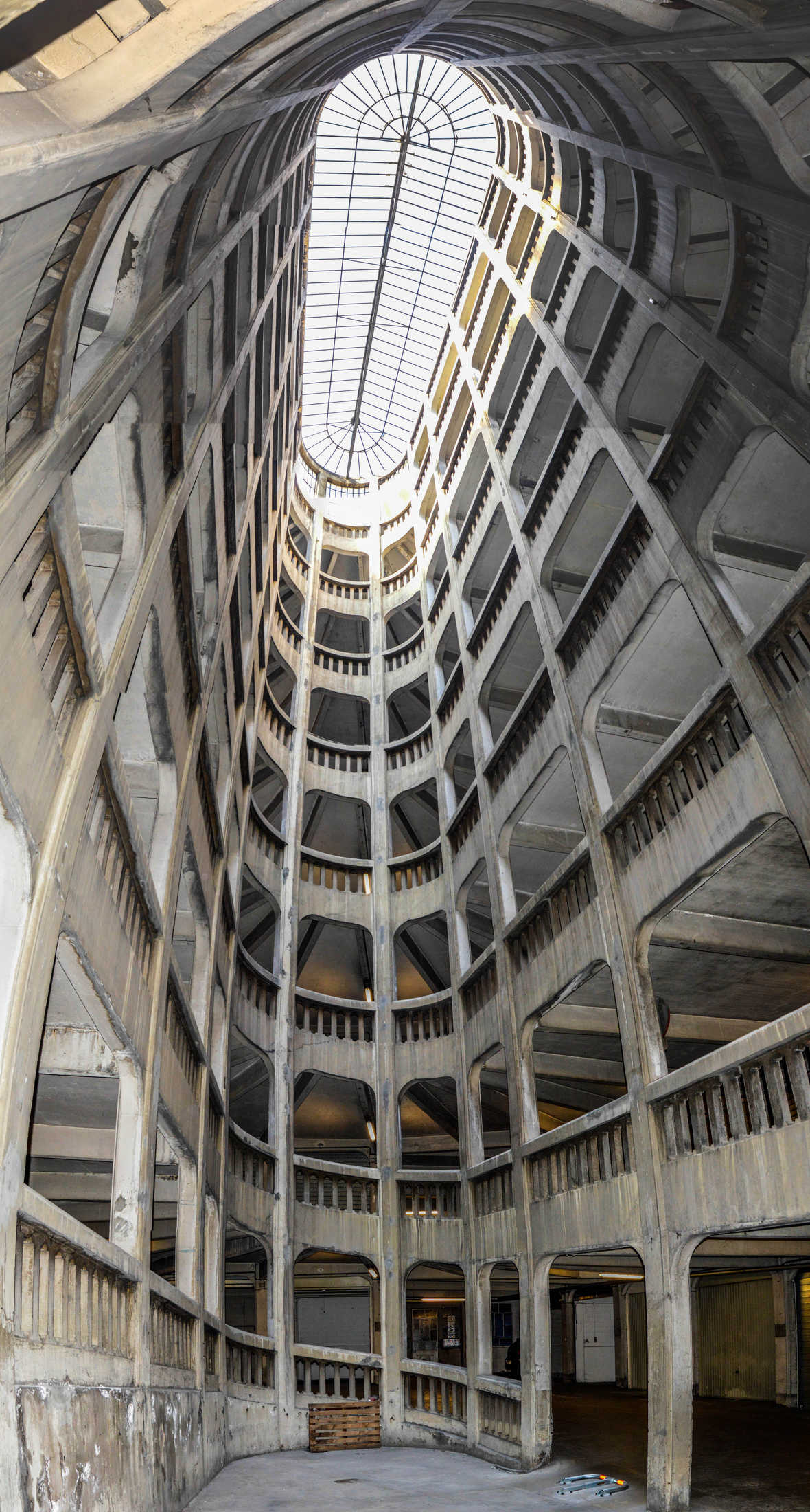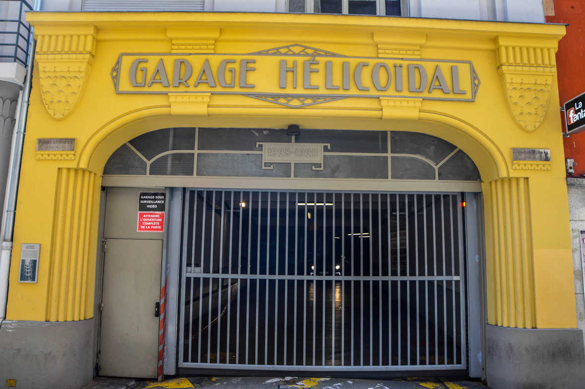 Le garage hélicoïdal, bâtiment d’art Déco en béton armé, construit en 1932, classé Monument historique en 1989, accueille toujours des véhicules.