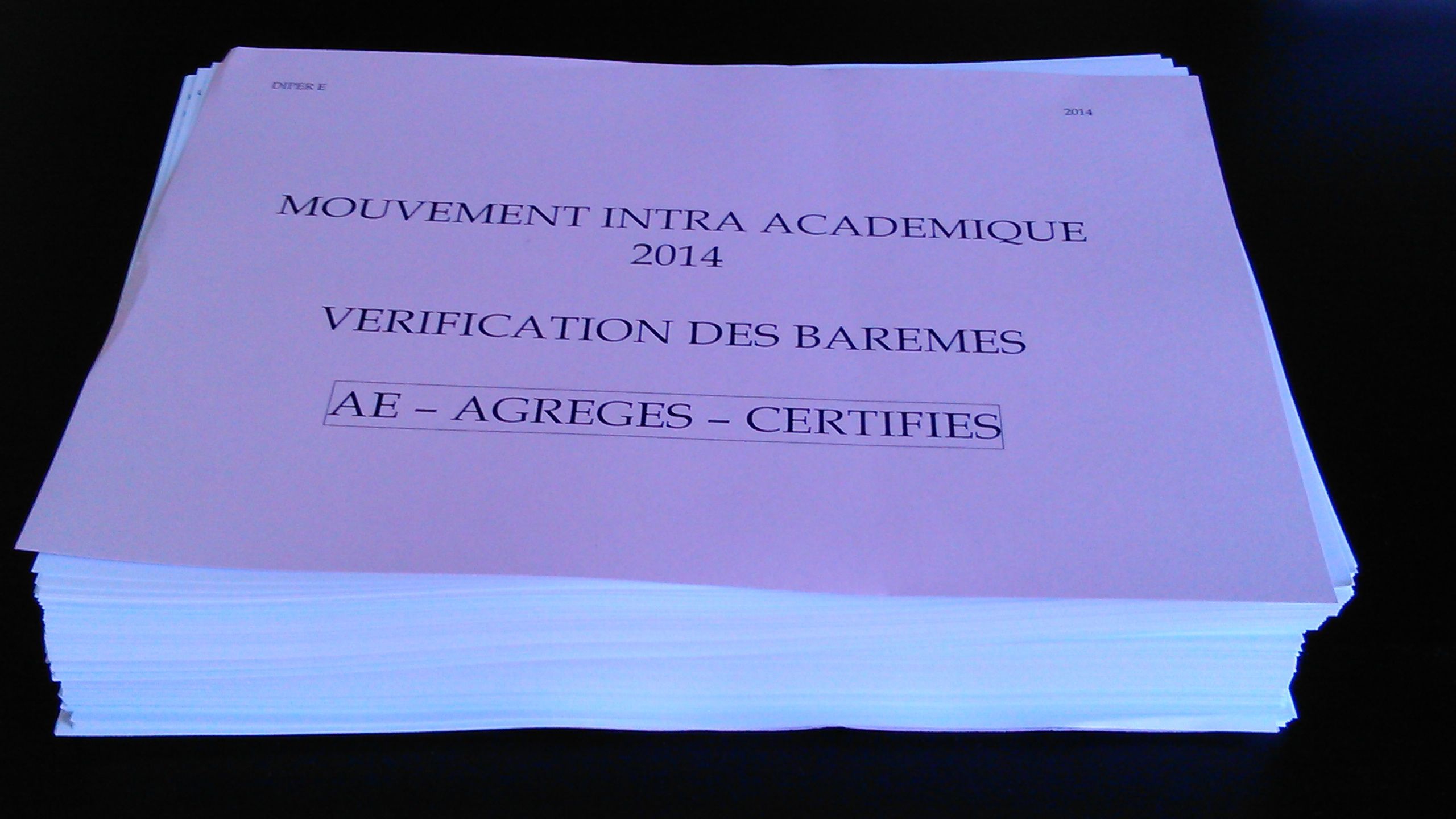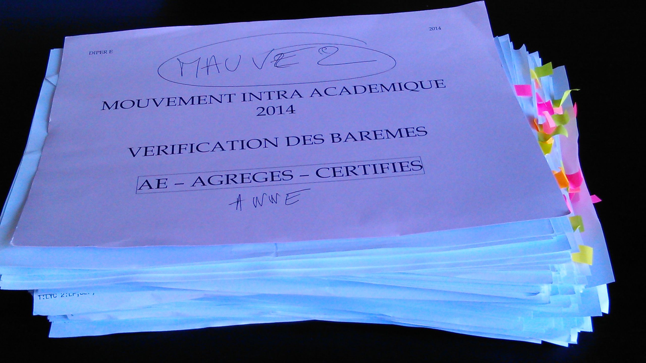 Dans un premier temps, le Rectorat édite ce que nous appelons le « Mauve 1 ». Les barèmes qui y sont indiqués résultent d’un premier travail des gestionnaires. Ces derniers ont consulté les documents envoyés par les candidats et ont affecté des barèmes en conséquence.