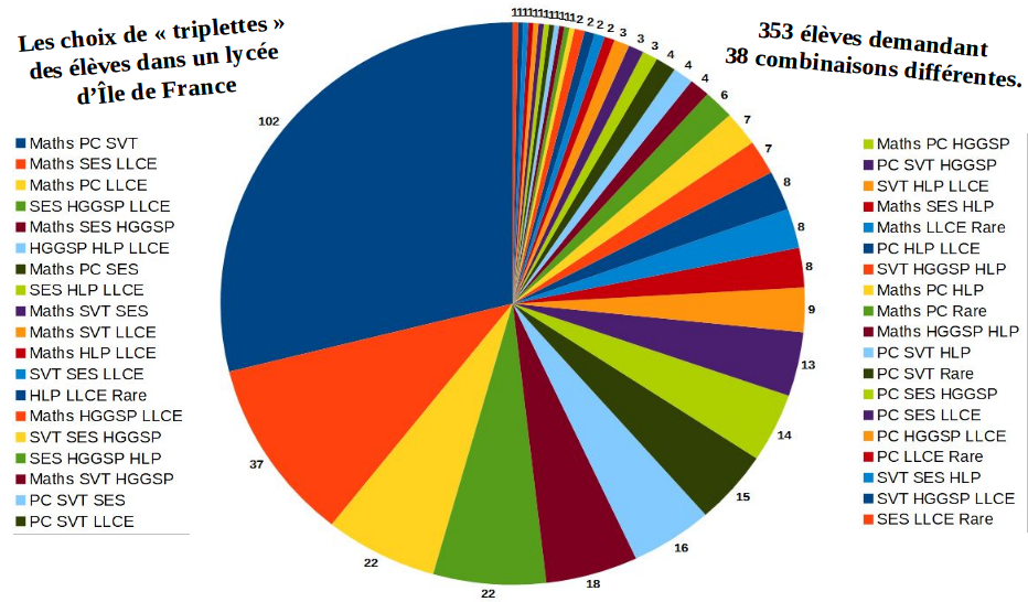 Les premières enquêtes dans les classes de seconde révèlent clairement la grande variété des combinaisons choisies, mais également la grande dispersion des élèves sur des combinaisons atypiques, l’essentiel des effectifs se concentrant sur des combinaisons reproduisant au plus près les anciennes séries.