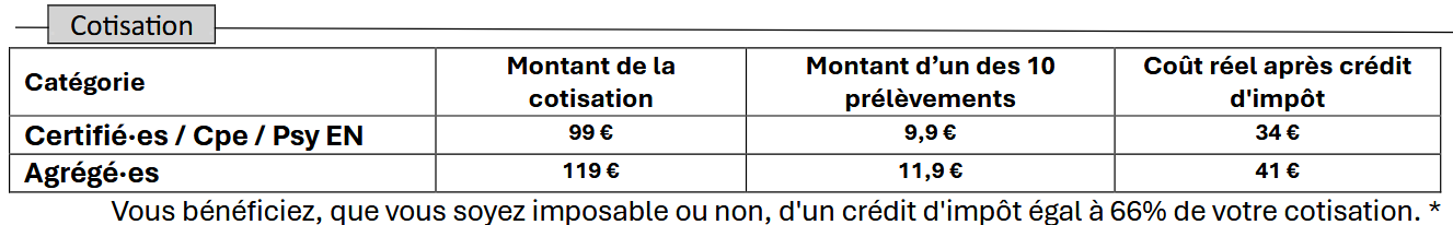 Montant des cotisations stagiaires profs/CPE/PsyEN