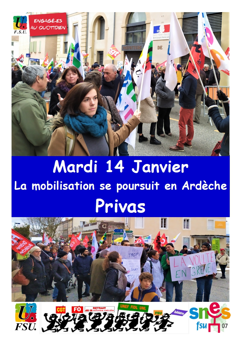 PRIVAS : AG à 9h30 (maison des syndicats) puis manifestation à 10h30 devant la préfecture ;