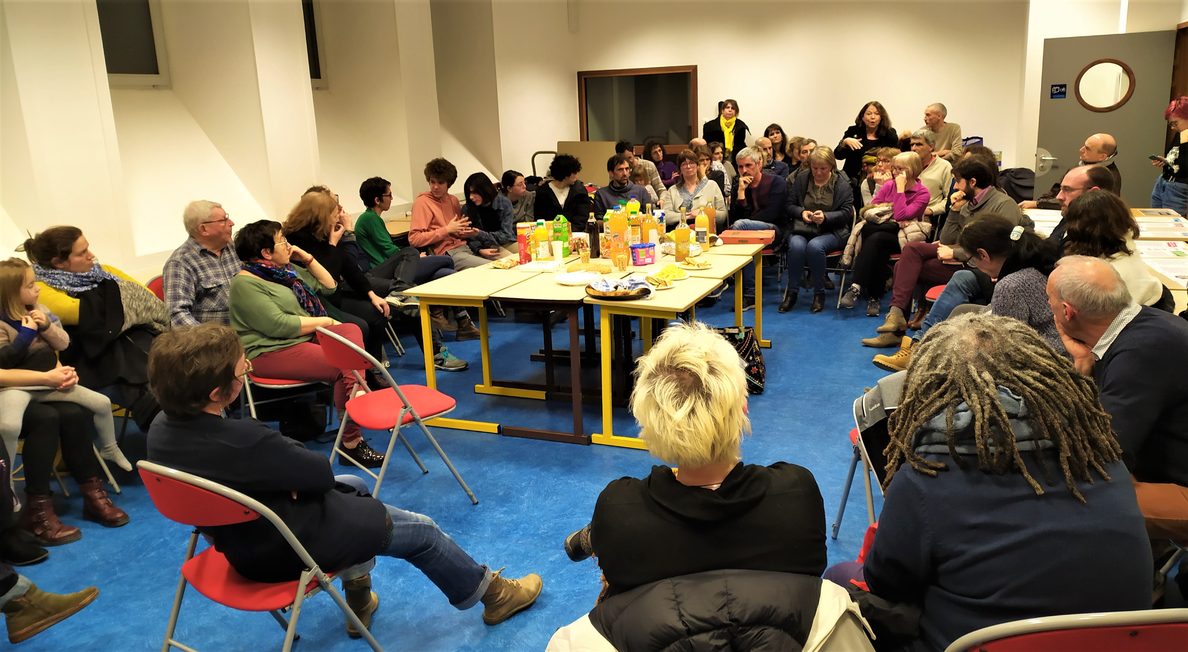 Plus de 50 personnes se sont retrouvées au Lycée Vincent d’Indy de Privas lundi soir pour participer à l’Apéro-Débat dans le cadre d’une nuit des écoles, parmi elles, des enseignant.e.s du premier et du second degré, des lycéen.ne.s, des parents d’élèves et des retraité.e.s.