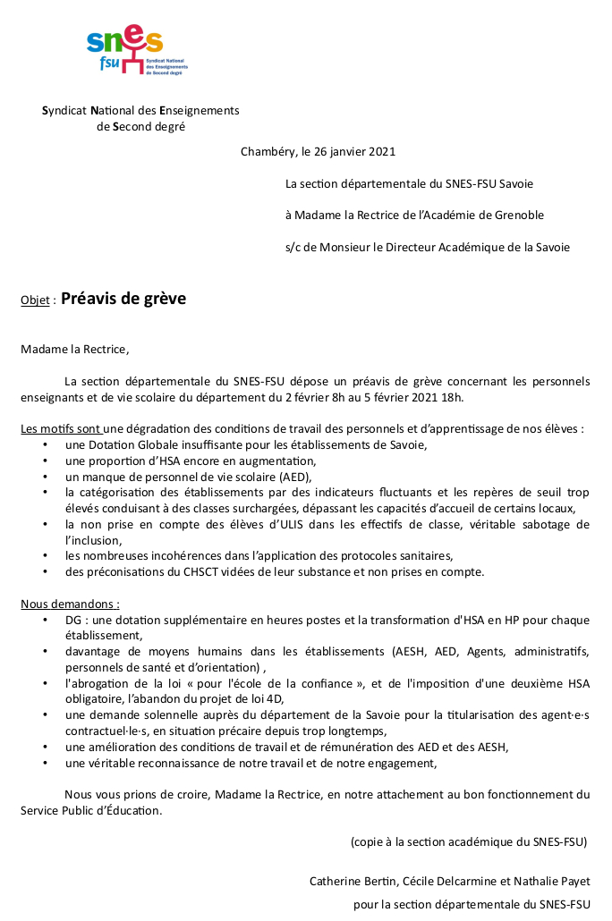 Vous êtes ici : Accueil Actualités Archives Préavis de grève départemental du 2 au 5 février 26 janvier 2021 Sections départementales Préavis de grève départemental du 2 au 5 février Imprimer l'article Cet article n'est probablement plus d'actualité VERSION PDF