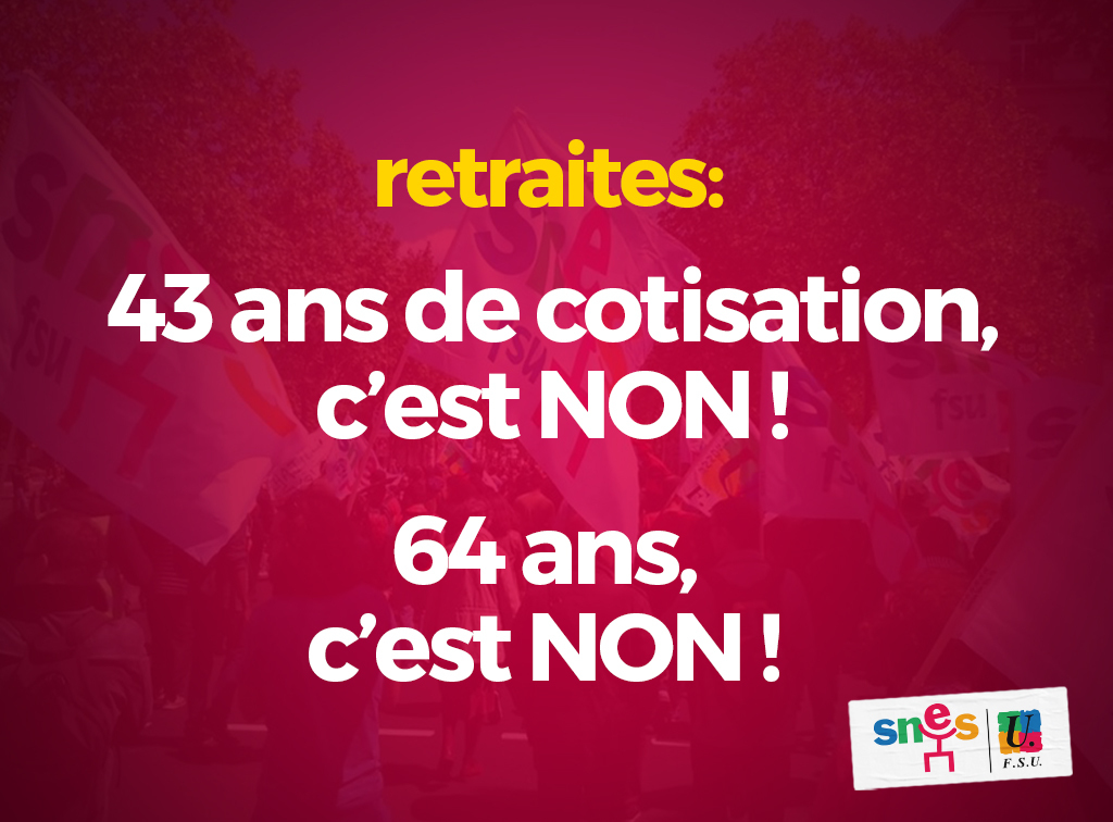 Le Snes, avec la FSU, s’inscrit dans le cadre unitaire interprofessionnel : pour gagner, la lutte doit continuer, s’amplifier et s’inscrire dans la durée. Un puissant mouvement social, une réforme inutile, injuste et désormais largement contestée et fragilisée, un gouvernement affaibli… nous pouvons gagner !