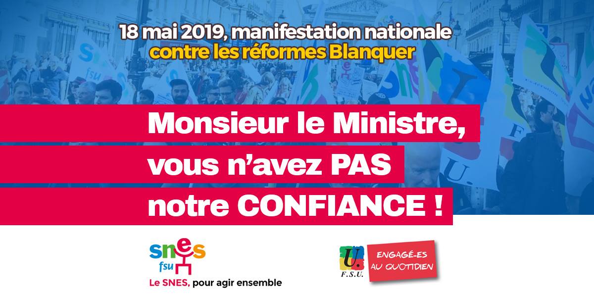 Le SNES-FSU, avec la FSU, appelle à manifester à Paris le samedi 18 mai 2019 pour la promotion du service public d’éducation, pour la revalorisation de nos métiers et la reconnaissance de notre rôle social.