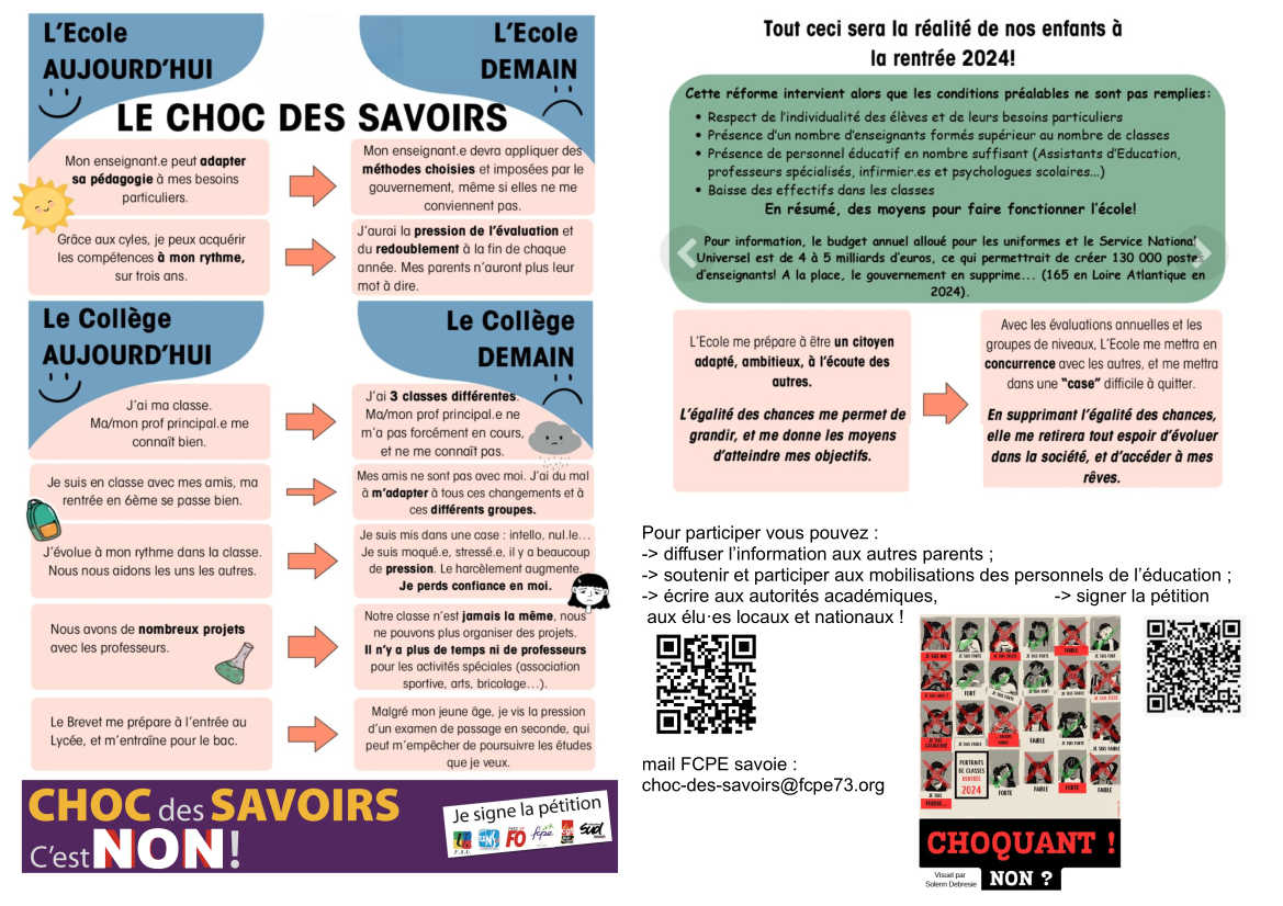Suite à la mobilisation des parents d’élèves (FCPE) et des collègues du 1er degré du REP+ de Chambéry le Haut pour des maintiens en poste, le mouvement s’amplifie et s’étend au refus des mesures du Choc des Savoirs :
