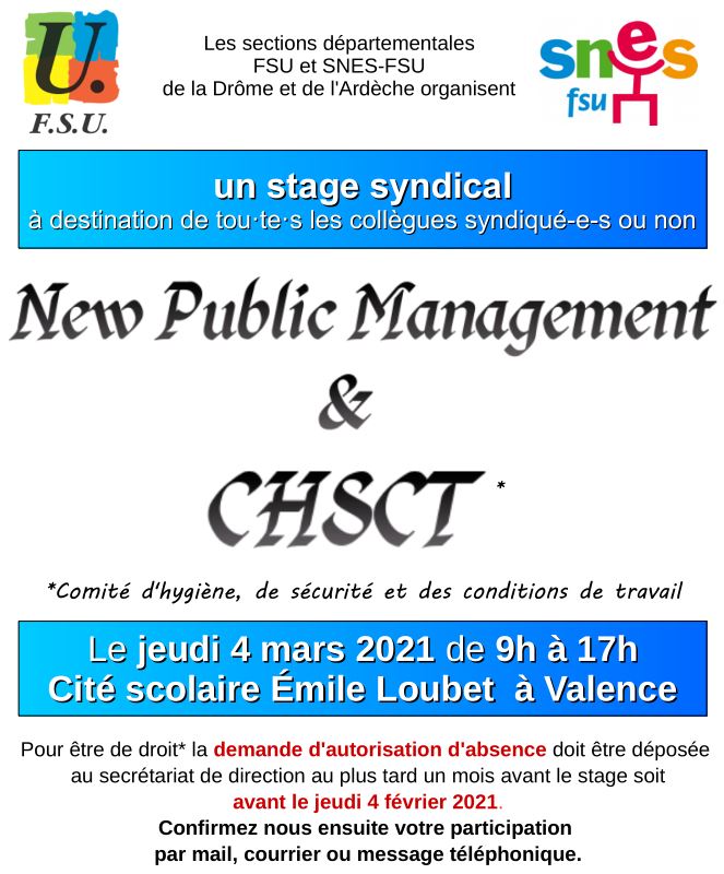 Pendant ce stage, il s’agira d’abord de définir cette nouvelle méthode managériale afin de mettre des mots sur ce qui crée malaise et souffrance au sein des personnels, pour ensuite trouver des moyens d’agir et des idées pour avancer.