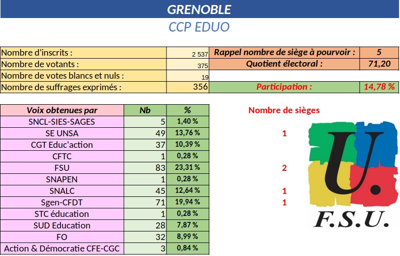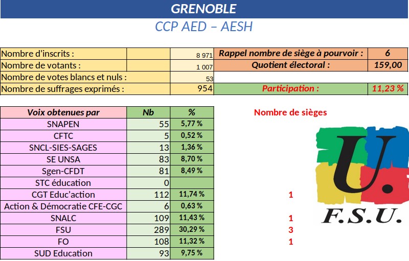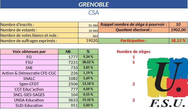 Ce sont 9 commissaires paritaires FSU (sur 19) qui sont prêt-es à nous défendre, à faire entendre notre voix, et 5 élu-es (sur 10) qui siégeront dans le nouveau CSA.